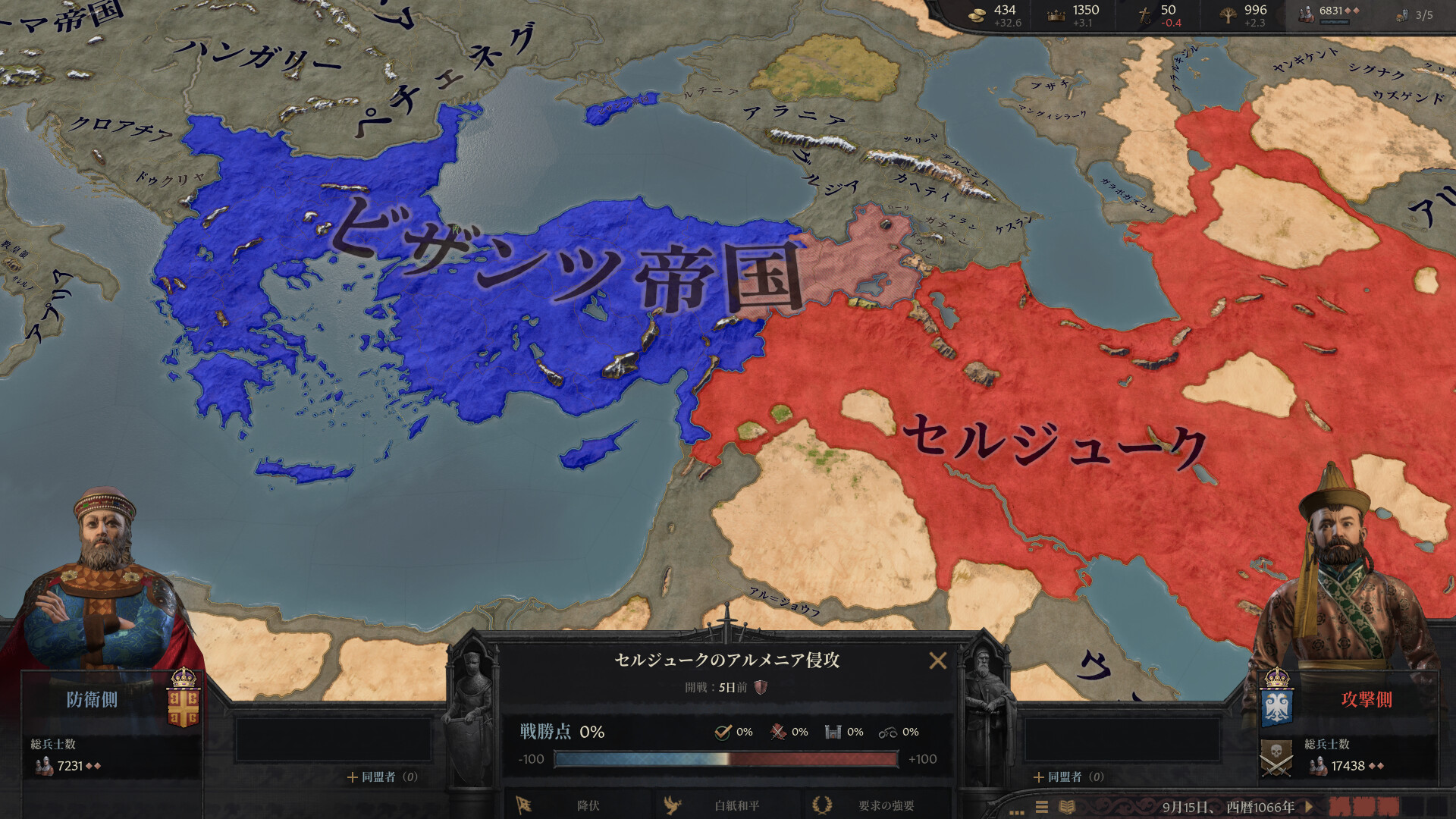 ゲームを起動するとまず、867年か1066年のどちらかを選んでプレイを開始する。マップはブリテン諸島からインド亜大陸まで広がり、プレイヤーは歴史上の実在人物か、あるいは架空の支配者を選んでその一族の物語を紡ぐ。操作の基本はシンプルで、左クリックで情報確認、右クリックでアクション選択という直感的な構成だ。しかしその「情報」の深さが他のゲームと一線を画す。家臣一人ひとりに性格特性があり、「野心家」の家臣は昇進がなければ謀反を起こすかもしれない。「貪欲」な配偶者は国庫を浪費するかもしれない。「無慈悲」な特性を持つ自分の息子は、王座を狙って毒を盛るかもしれない——実際に起きた話だ。